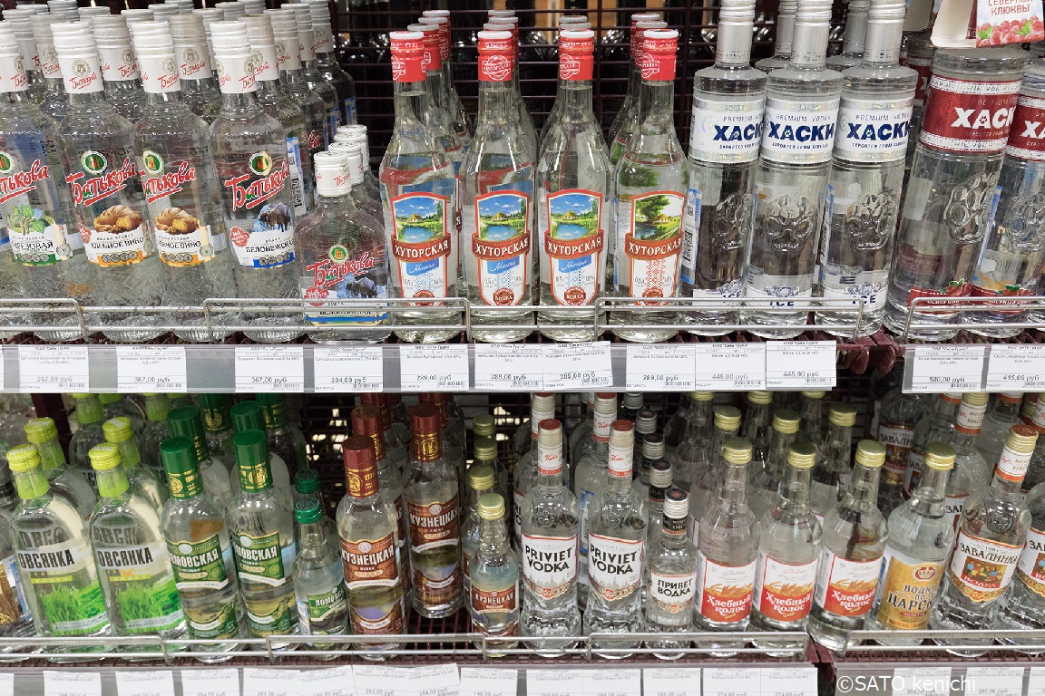 UUS シティーモール内のお酒売り場(たくさんの種類のウォッカ 内で公開